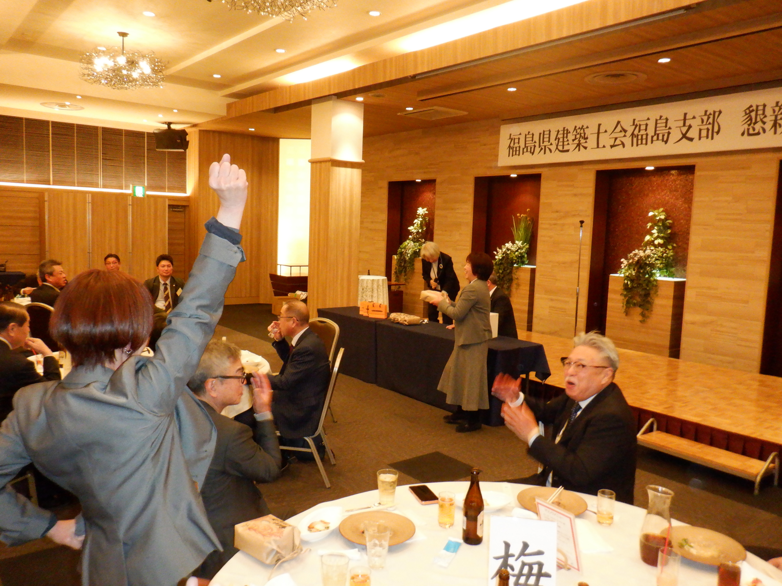そして宴もたけなわな中、和田聡史 担当副支部長が建築士会と会員事業所の益々の発展と皆々様の健勝を祈念して中締めの御発声、成功裡のうちに閉会することとなりました。次回も多くのご参加をお願いいたします。
